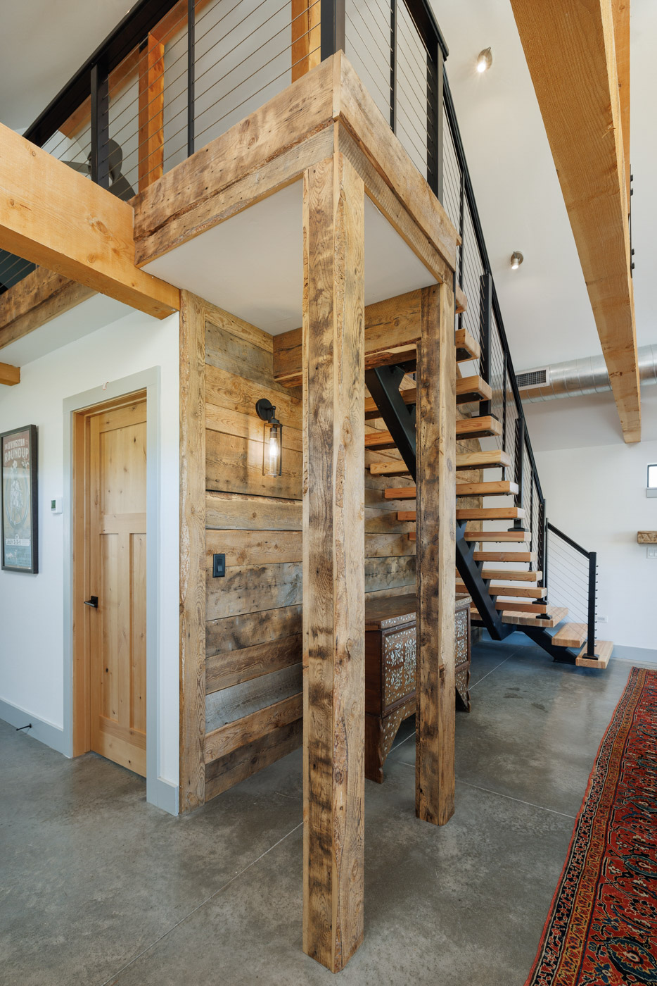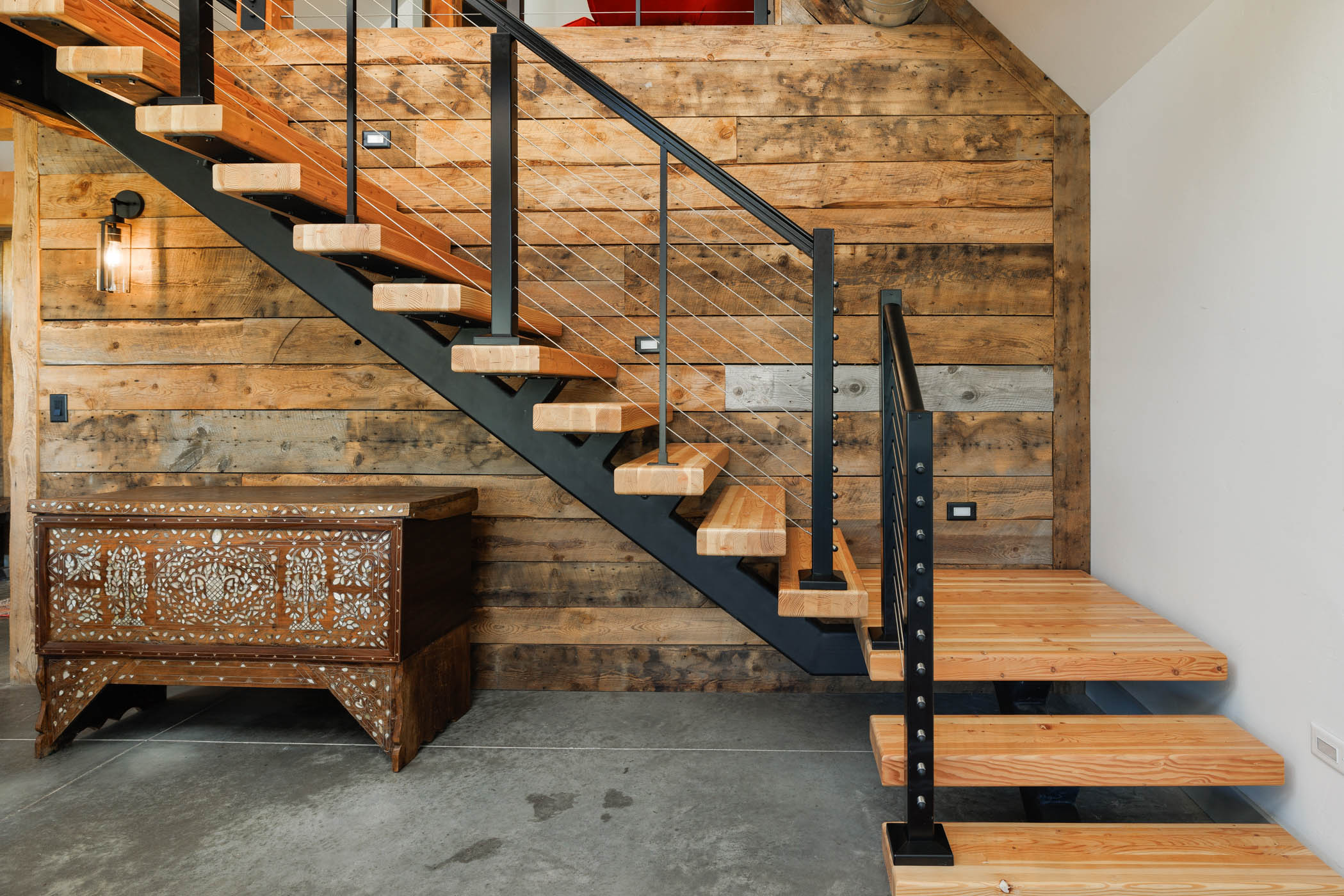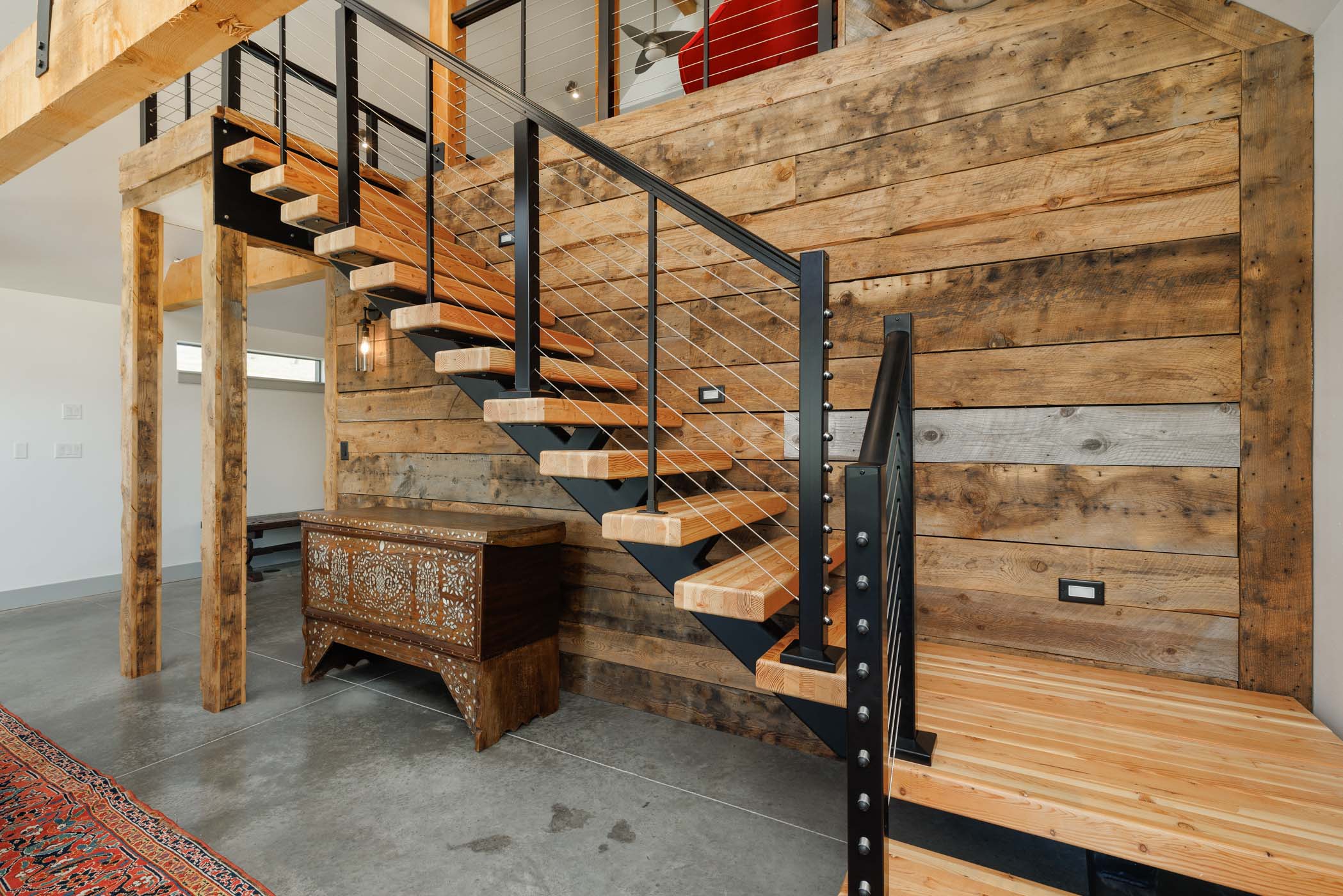 For this residential construction project, we took the owner’s dream to repurpose their early 1900’s barn and transform it into a beautiful new space. Using the floating stairs and railings to meet the owner’s nautical inspiration, we harvested barnwood from the original corrals to bring it all together.