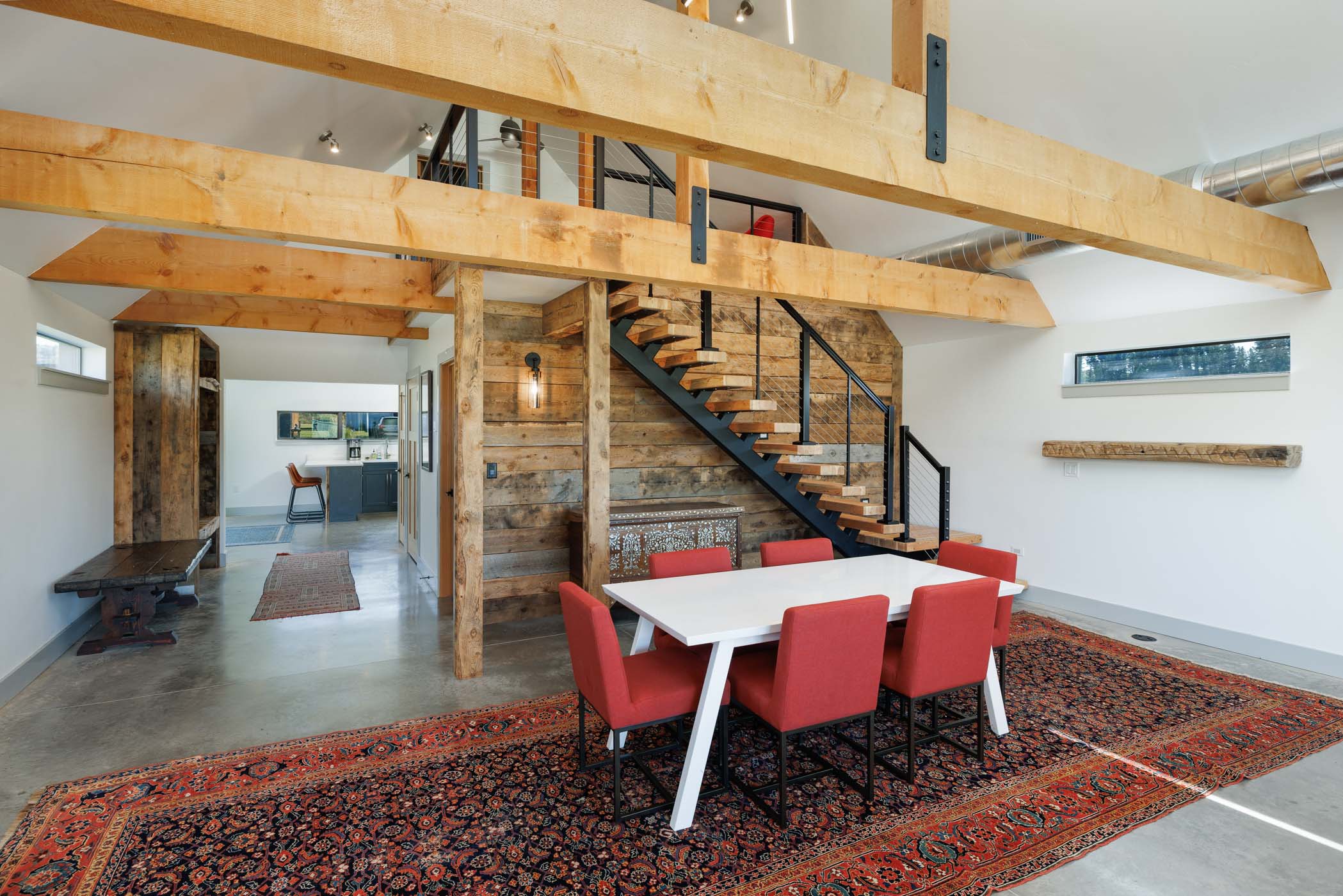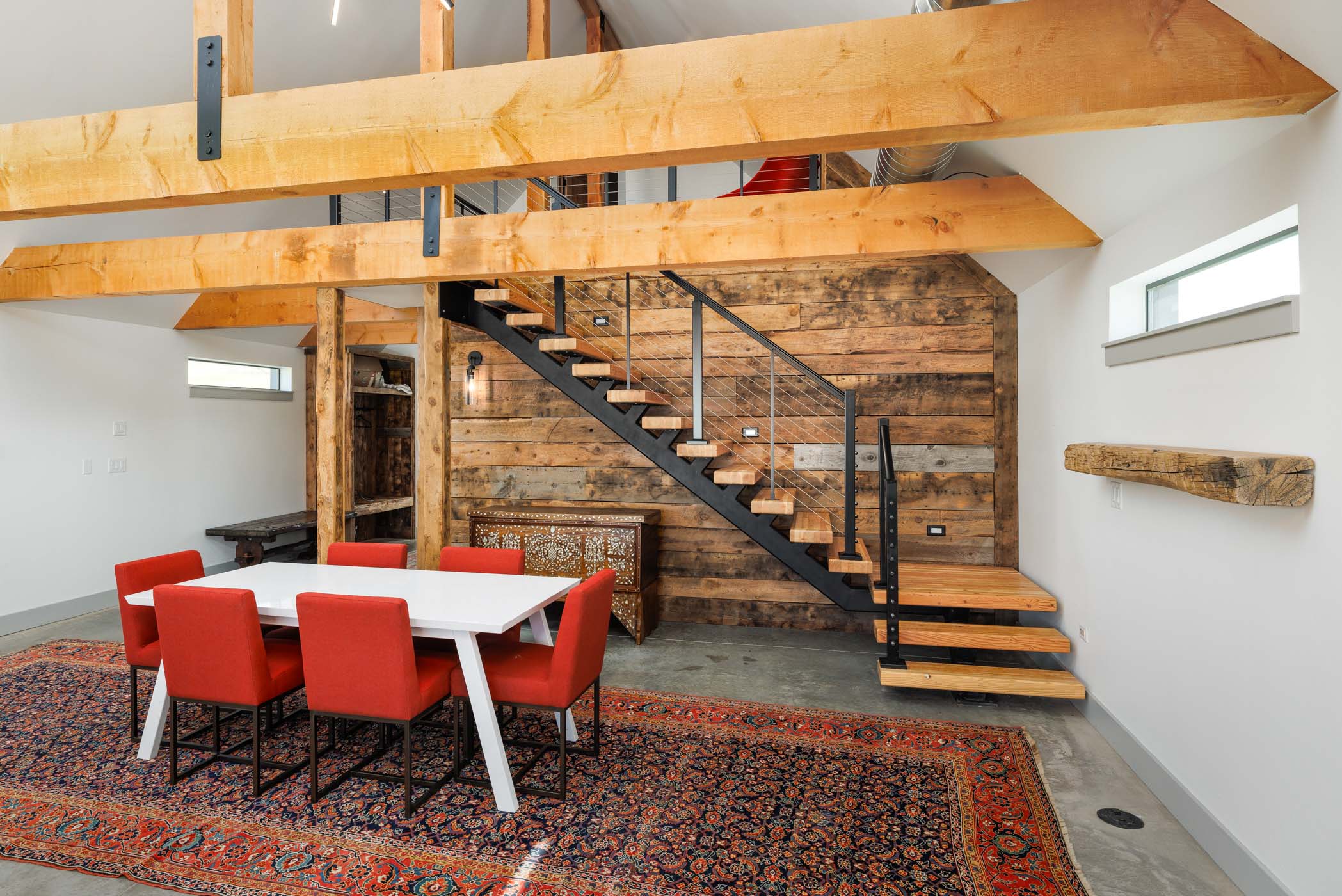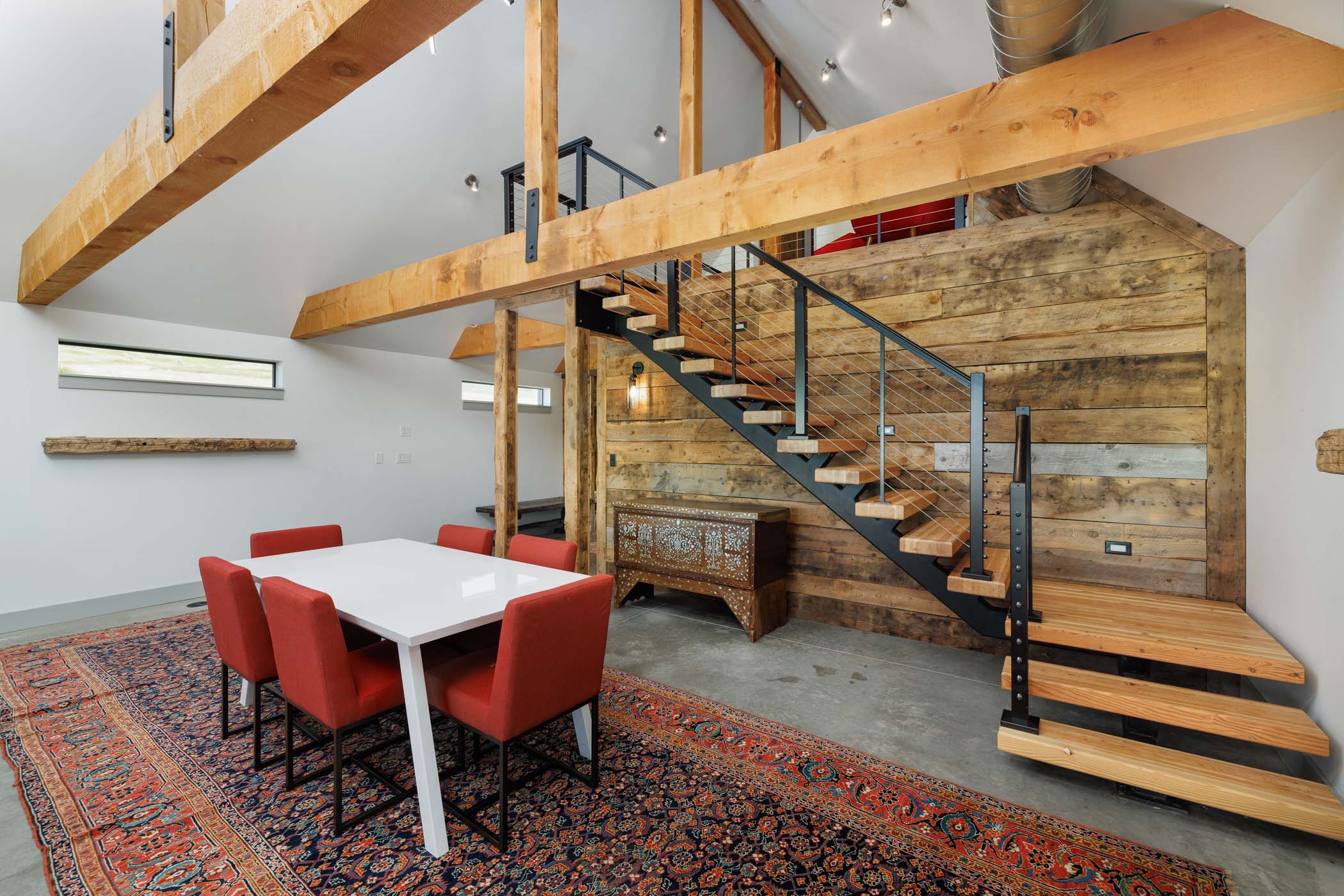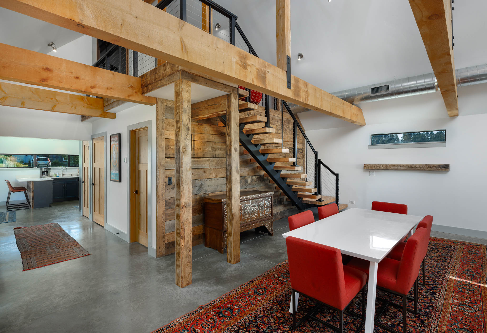 For this residential construction project, we took the owner’s dream to repurpose their early 1900’s barn and transform it into a beautiful new space. Using the floating stairs and railings to meet the owner’s nautical inspiration, we harvested barnwood from the original corrals to bring it all together.